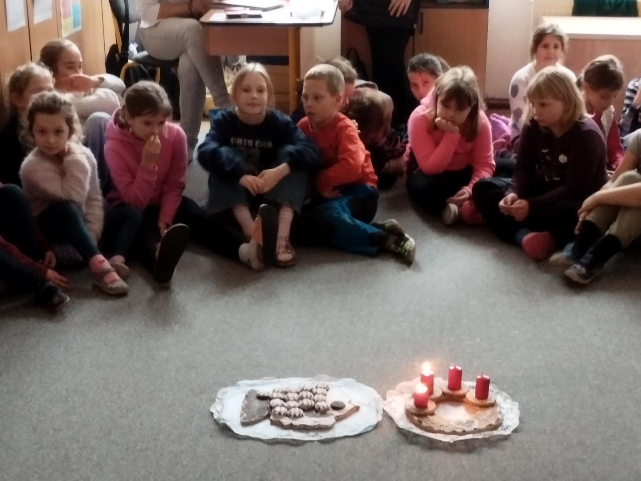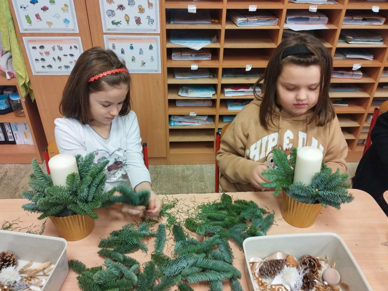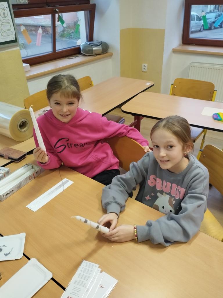 Prosinec ve školní družině: adventní chvilky, rukodělná činnost: zdobení svíček voskovými proužky a plátky, vyrábění drobných dárků, ketlování- korálkování atd ...