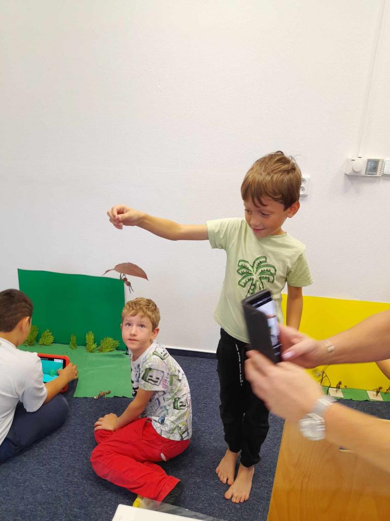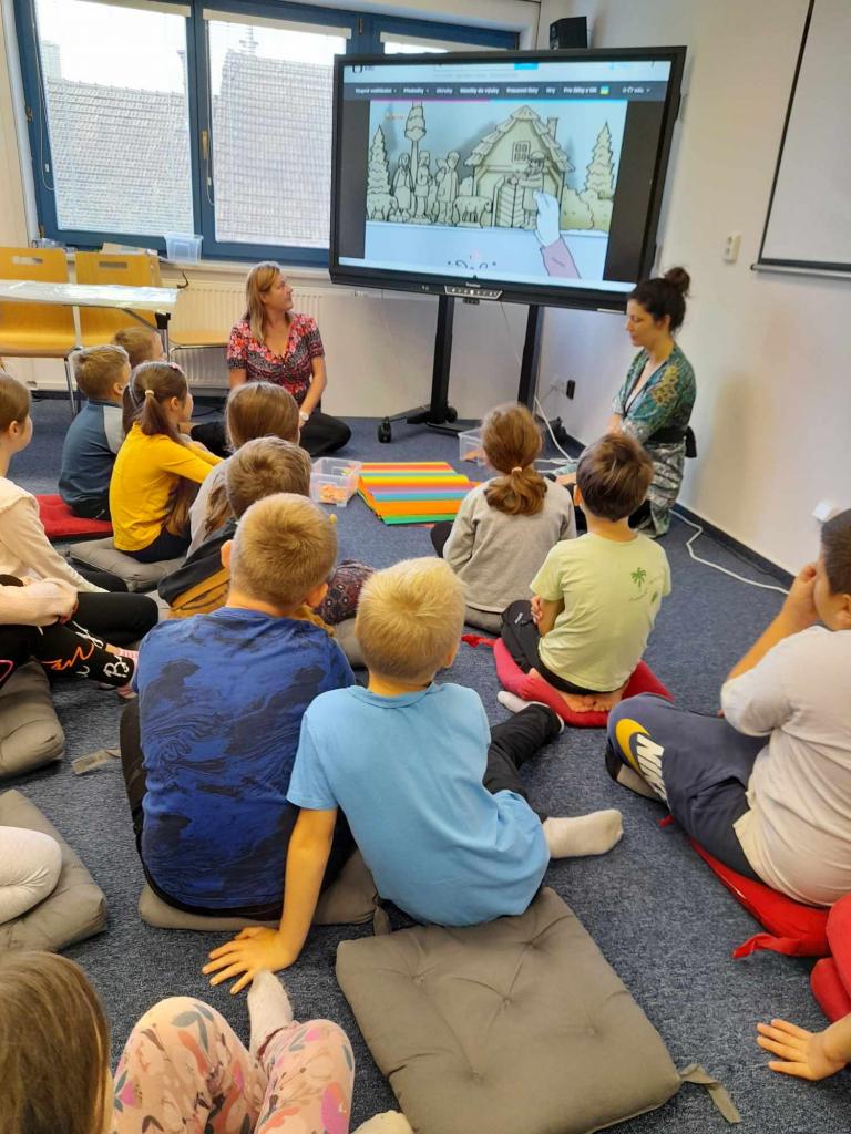 Byla to pohádková výprava - protože je vlaková výluka, tak jsme vyrazili náhradní autobusovou dopravou - v našem podání tedy kouzelným vlakem - nevlakem hned v osm ráno. Směr Tišnov. Směr Městská knihovna. Směr Multimediální dílna. A nebo také prostě směr tam, kde se mění dětská fantazie a představivost v animované filmy! A tyhle filmy se druháčci naučili za jediné dopoledne tvořit doslova od A do Z. Co vše mohou taková prťata zvládnout? Strašně moc! Od vytvoření hlavních postav, všech kulis, přes vymýšlení scénáře až po samotnou realizaci a tvorbu parádního animáku. Dílna pro nás byla bezvadně připravená, skvěle zorganizovaná. Za to patří velký dík její šéfové, Monice Kvasnicové. Děti se tak po krátkém úvodu mohly rovnou pustit do práce. A byla to pořádná dřina! Děti plně zabavila na víc jak dvě hodiny, ve kterých vznikali úžasní dubánci, celý jejich svět a následně v rukou dětí a na obrazovkách tabletu celý tento fantazijní svět ožíval a rozhýbal se. Velmi oceňujeme, jak se druháci chopili práce. Ať už ti, kteří se spontánně rozdělili do skupinek a na svých dílech spolupracovali naprosto příkladně, tak i ti, kteří se rozhodli pro sólovou kariéru a zvládli celý proces přípravy a tvorby samostatně. Výsledná díla všech rozhodně stála za pochlubení při závěrečné reflexi a společném promítání.