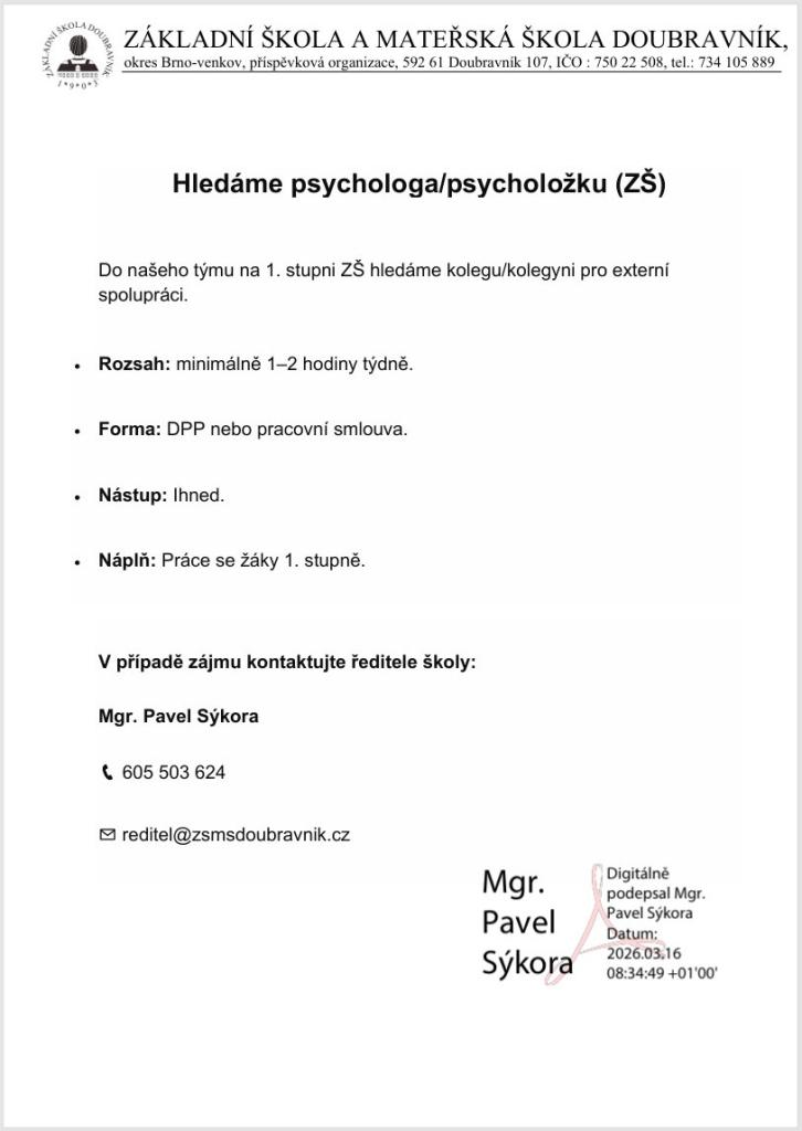 Základní škola a Mateřská škola Doubravník, okres Brno-venkov, příspěvková organizace