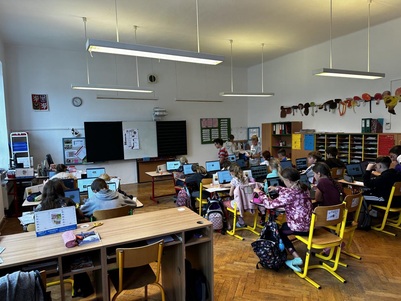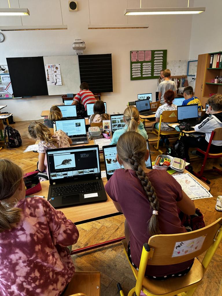 Tvoří ji 20 notebooků, které si učitelé mohou půjčovat do tříd, a tak svou výuku obohatit o IT technologie. Škola zakoupila i nabíjecí skříň, ve které jsou notebooky připravené k použití a také je lze pohodlně dopravit až do třídy. V mobilní počítačové učebně se nachází i 3D tiskárna, kterou jsme získali zapojením do projektu Průša pro školy.