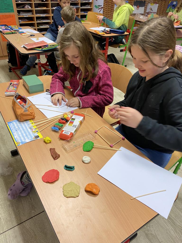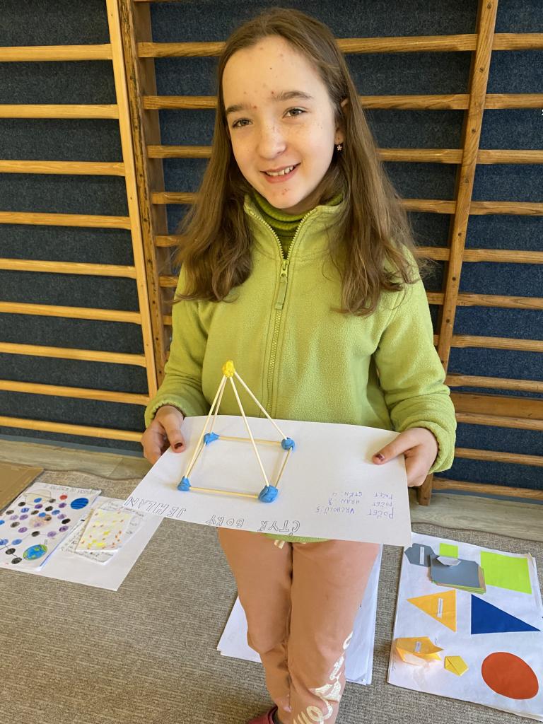 V dnešní hodině jsme pomocí plastelíny a špejlí vytvářeli tělesa. Podívejte se, jak nám to šlo. :-)