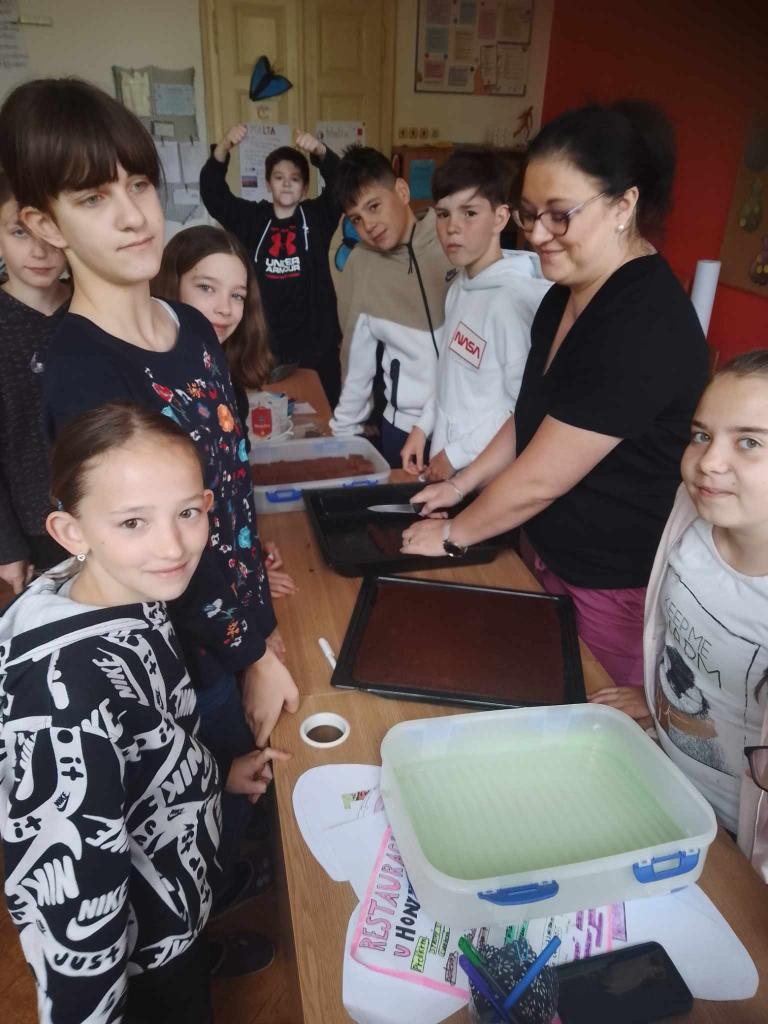 Když vlak zastavil v Nedvědici, zavládlo ticho, ale první setkání bylo velmi milé, protože páťáci nám přišli naproti. Díky skvěle připravenému programu paní učitelky Dominiky Štarhové ledy rychle povolily a děti se brzy daly do řeči. Dozvěděly se o sobě spoustu informací a nakonec vznikla i nová přátelství. My jsme s sebou na návštěvu jako poděkování upekli buchtu a vyrobili psaníčka s receptem. Bylo vidět, že podmáslový perník všem chutnal, protože se po něm rychle zaprášilo. Obavy "Jaké bude první setkání, budeme si sympatiččtí, vezmou nás?", se odpoledne zdály jako zbytečné. Prožili jsme milé dopoledne v novém prostředí, s novými skorospolužáky, plné skvělých zážitků a aktivit, které nám určitě pomohly k tomu, aby byla ta velká změna, která v září přijde alespoň o něco snažší.