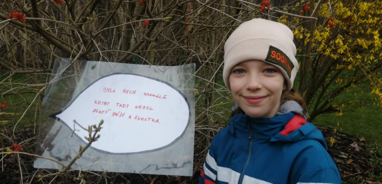 3. Účastníci dílny tvůrčího psaní přes nepřízeň počasí zahájili na Zahradě ticha. Daisy Mrázková často nechávala mluvit věci kolem nás – přírodu i lidské výtvory. Děti se ji pokusily napodobit. Každý dostal zalaminovanou bublinu, našel si místo, které ho v zahradě inspirovalo a fixou dopsal, co si asi myslí/říká. Po přesunu do školy jsme si přečetli příběh Chlapeček Václav. Ten chtěl být letcem, ale všichni ho od jeho snu zrazovali a radili mu, co má a nemá dělat, až bude dospělý. Hlavně ne letce! Václav se však nedal a šel za svým cílem. Když se stal úspěšným letcem, svezl je letadlem „A všichni vrtěli hlavami sem a tam a dívali se a říkali: Copak náš Venoušek, my jsme to vždycky říkali“. Děti se po přečtení rozdělili do dvojic či trojic, vyluštili si zašifrované povolání a do připravené osnovy psaly na počítači nový příběh o chlapečkovi, který se chtěl stát prezidentem, policistou nebo popelářem a o holčičce, která chtěla být učitelkou. Vznikly velmi vtipné příběhy, kterými se děti bavily nejen při psaní, ale i při společném čtení. Na závěr jsme společně tvořili myšlenkovou mapu na téma: „Co by se stalo, kdyby…. „ Opět jsme se přesvědčili, že fantazie dětí je nekonečná a inspirativní!