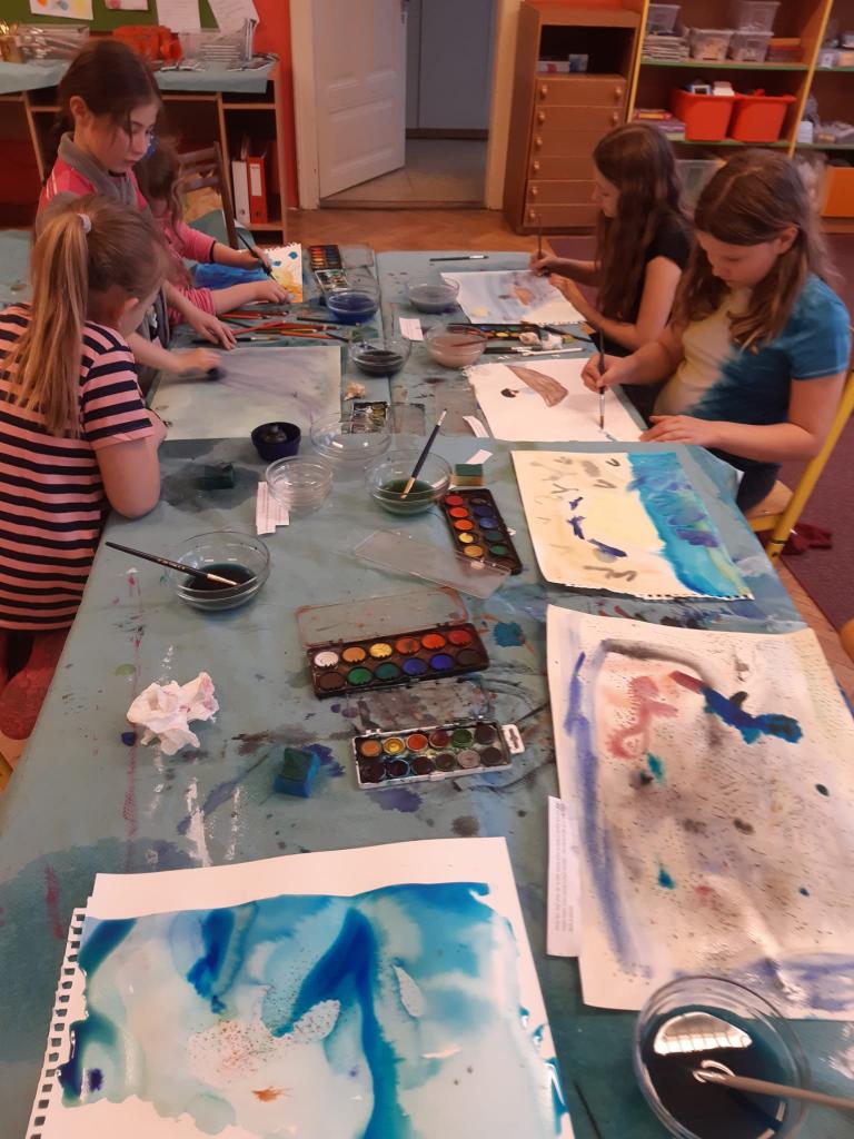 Následující týden jsme si udělali společnou zpětnou vazbu, kde se skupinky pochlubily, co všechno se v dílnách stihlo. Největší úspěch měl čtený příběh, jak se Honzík chtěl stát popelářem, sepsaný třemi páťáky, který si děti vyžádaly přečíst ještě jednou.