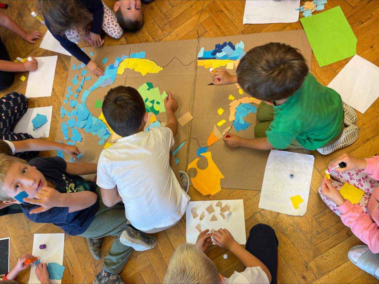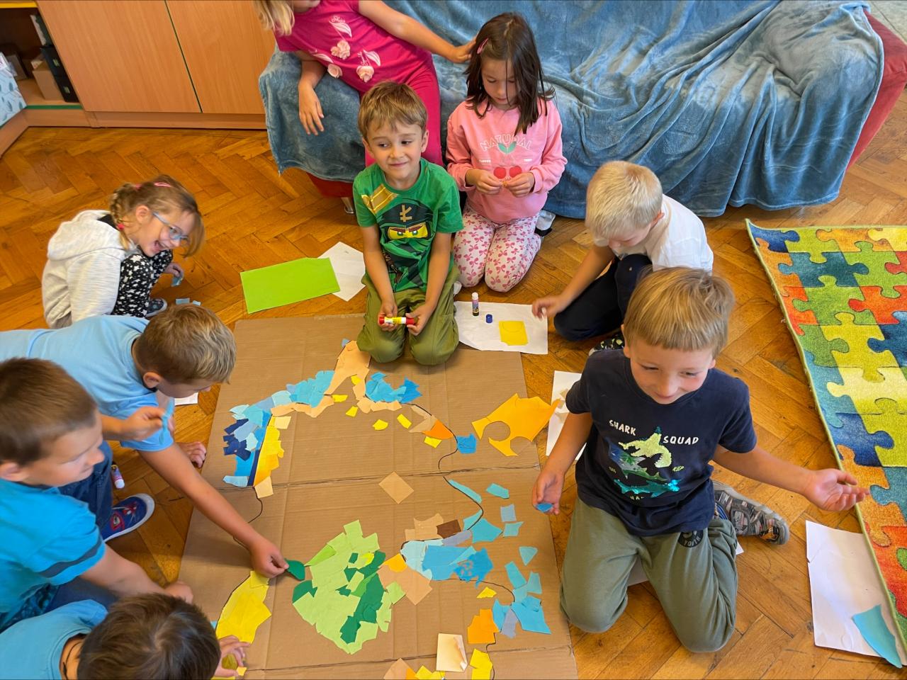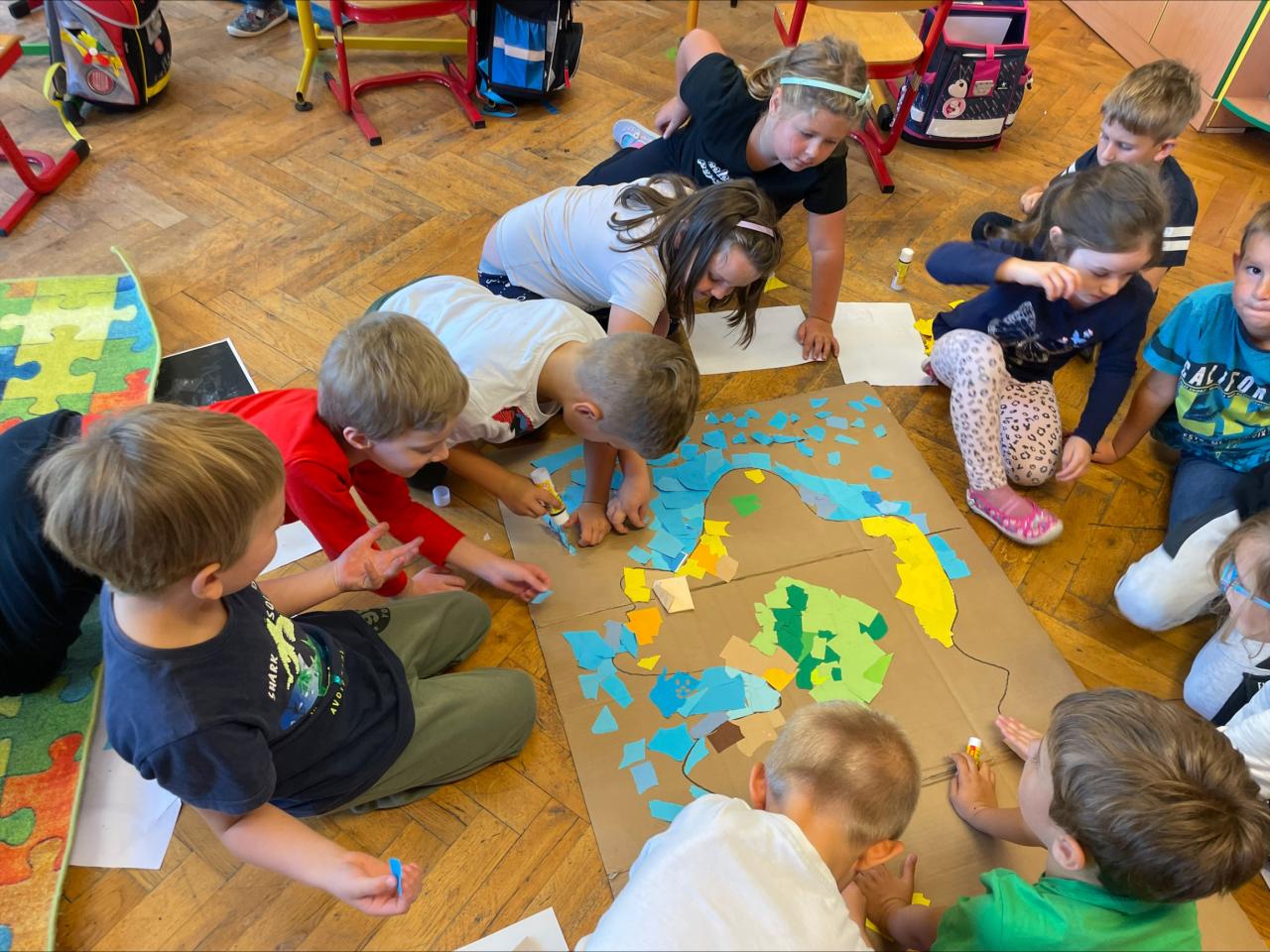Prvňáčci vyvozovali písmenko "O" - vytvářeli ostrov obra Olivera, který je tímto písmenem provází.