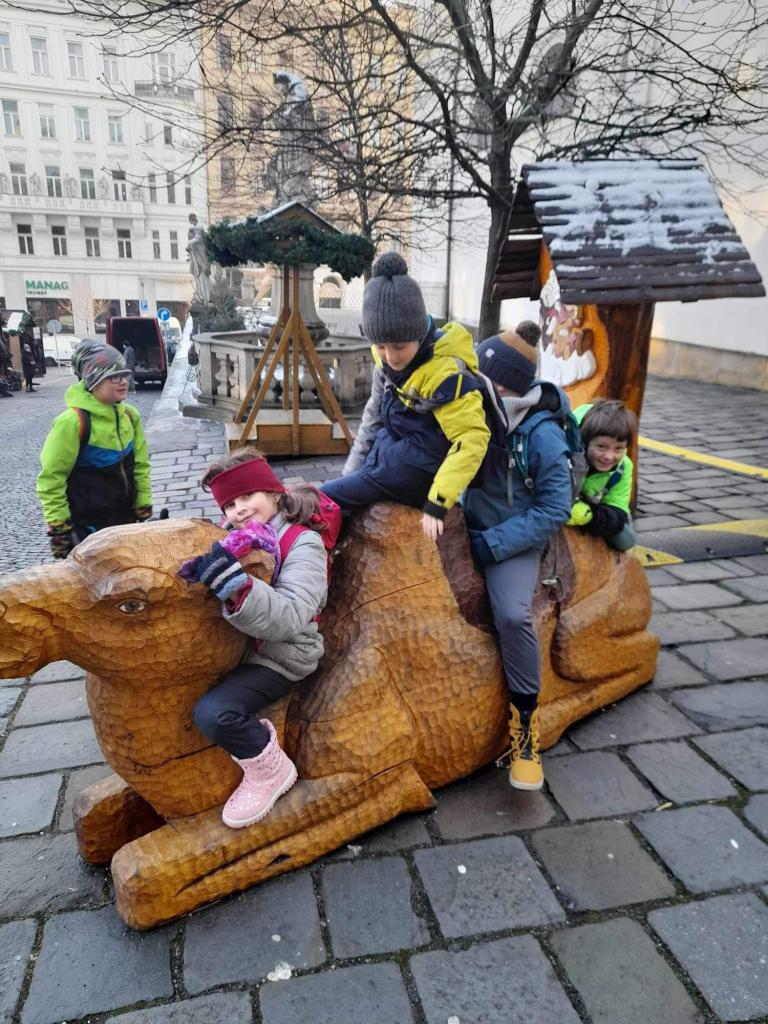 Kromě zábavného a poučného programu přímo v digitálním sále planetária jsme si vyzkoušeli planetární váhy (zjistili jsme, kolik by kdo vážil na různých vesmírných tělesech s přepočtením jejich gravitací), užili jsme si na Brno neobvykle bohaté sněhové nadílky a také jsme si prošli a potěšili se vánoční výzdobou ve městě. Obdivovali jsme vánoční stromeček na Zelném trhu, pobavil nás brněnský drak v zimním vybavení - svetr v brněnských barvách mu moc sluší! Také jsme stihli obdivovat nádherný vyřezávaný betlém na Dominikánském náměstí, kde si druháci i vyzkoušeli „jízdu“ na některých dřevěných zvířatech. Strávili jsme krásné dopoledne a odvezli jsme si spoustu příjemných zážitků.