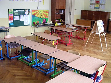 Děti z 1. až 5. ročníku se učí v patře ve dvou třídách. Třetí z nich využívají jako školní družinu a zároveň pro výuku výchov a angličtiny. Kdo už se nebyl ve škole dlouho podívat, by možná místnosti ani nepoznal. Jsou totiž vybaveny novými výškově stavitelnými židlemi a lavicemi. V loňském roce se nám podařilo koupit z uspořených peněz na provoz od zřizovatele nábytek pro 20 žáků.