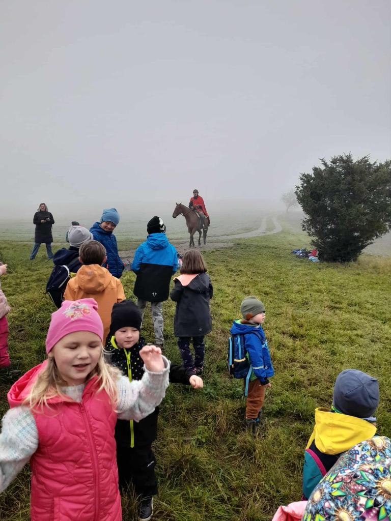 Vydali jsme se na výpravu za svatým Martinem a prožili den plný objevování, radosti a laskavosti. Na Bozince nás čekal svatý Martin na bílém koni, který se podělil o svůj plášť s promrzlým žebrákem přesně jako v legendě o svatém Martinovi. Děti tvořily, hrály si, zkoumaly podzimní přírodu a učily se pomáhat jeden druhému. Prvňáčci našli také krabičku laskavosti, díky které propojíme prožitky z výpravy s třídním projektem „Korálový útes laskavosti“. Den jsme zakončili společnou reflexí a svatomartinskými rohlíčky, které chutnaly přesně tak, jaký byl celý den – sladce a s dobrým pocitem.