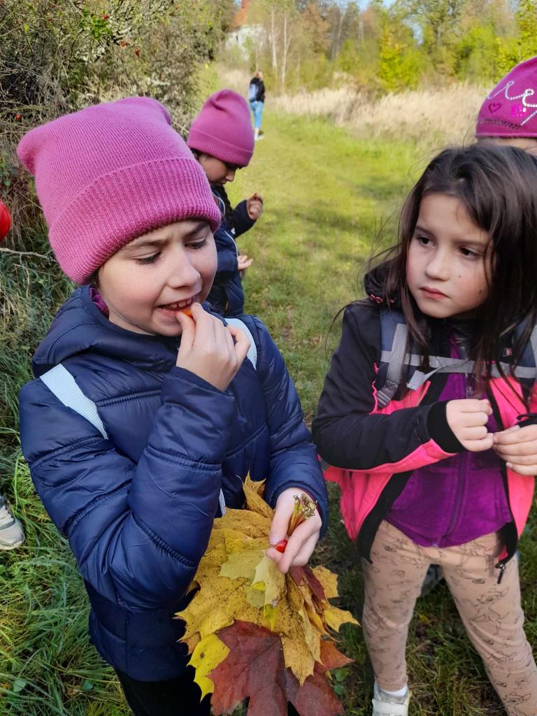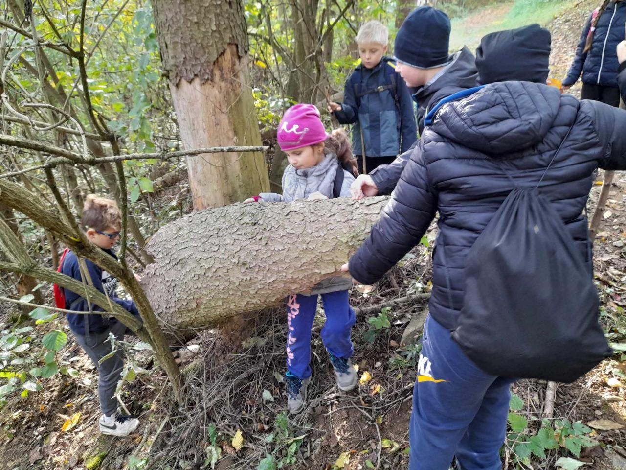 Není nad to spojit získávání dovednosti a znalostí s praktickým životem a prožitkem. Letošní babí léto přímo volalo po trávení času venku. Druháci v uplynulých dnech toto volání vyslyšeli. Cesta na Bozinku se proměnila v dobrodružnou výpravu plnou zážitků. Přitom jsme stihli i číst, zaznamenávat, porovnávat, řadit, třídit, komunikovat mezi sebou, spolupracovat, bádat, ochutnávat a všímat si všech proměn, které se v přírodě dějí. Velký úspěch měli stromoví chmatáci a porovnávání stromů měřením - stromy jsme si rozdělili na mrňouse, chňapky, škrtiče, mazly, tlusťochy a obry - podle toho, jak (ne)snadno si je můžeme poměřit. Trénink jsme provedli v parku, sbírali jsme data o lípách, po měření vyhodnotili získané údaje, porovnali rozdíly jednotlivých měření a výsledky zaznamenali do grafu. Ten jsme následně mohli interpretovat. S lítostí jsme nenašli ani jednu lípu - mrňouse. Naštěstí jsme si jejich existenci ověřili na procházce na Bozinku, kde jich kolem cesty roste požehnaně. Stejně tak jsme cestou na Bozinku nalézali smutné následky řádění kůrovce. Z některých stromů se kůra loupala jak z pomeranče. Neodolali jsme a prozkoumali jsme pořádný kus. Nahoře na Bozince jsme uspořádali festival chutí podzimu. Zjistili jsme, jak to vypadá, když vám trnkou strne celá pusa. Objevili jsme, že trnka je peckovice. Pak jsme narazili na šípky - jsou jedlé? Jasně, takže hurá na ně. Zbavit semínek a chloupků a rychlé doplnění vitaminu C. Nakonec jsme stihli i plnění úkolů s podzimní tématikou. Největší radostí a oceněním naší práce jsou rozzářená dětská očka a smutný povzdech: „Paní učitelko, já nechci přestávku. Nemůžeme mít rovnou další hodinu?“