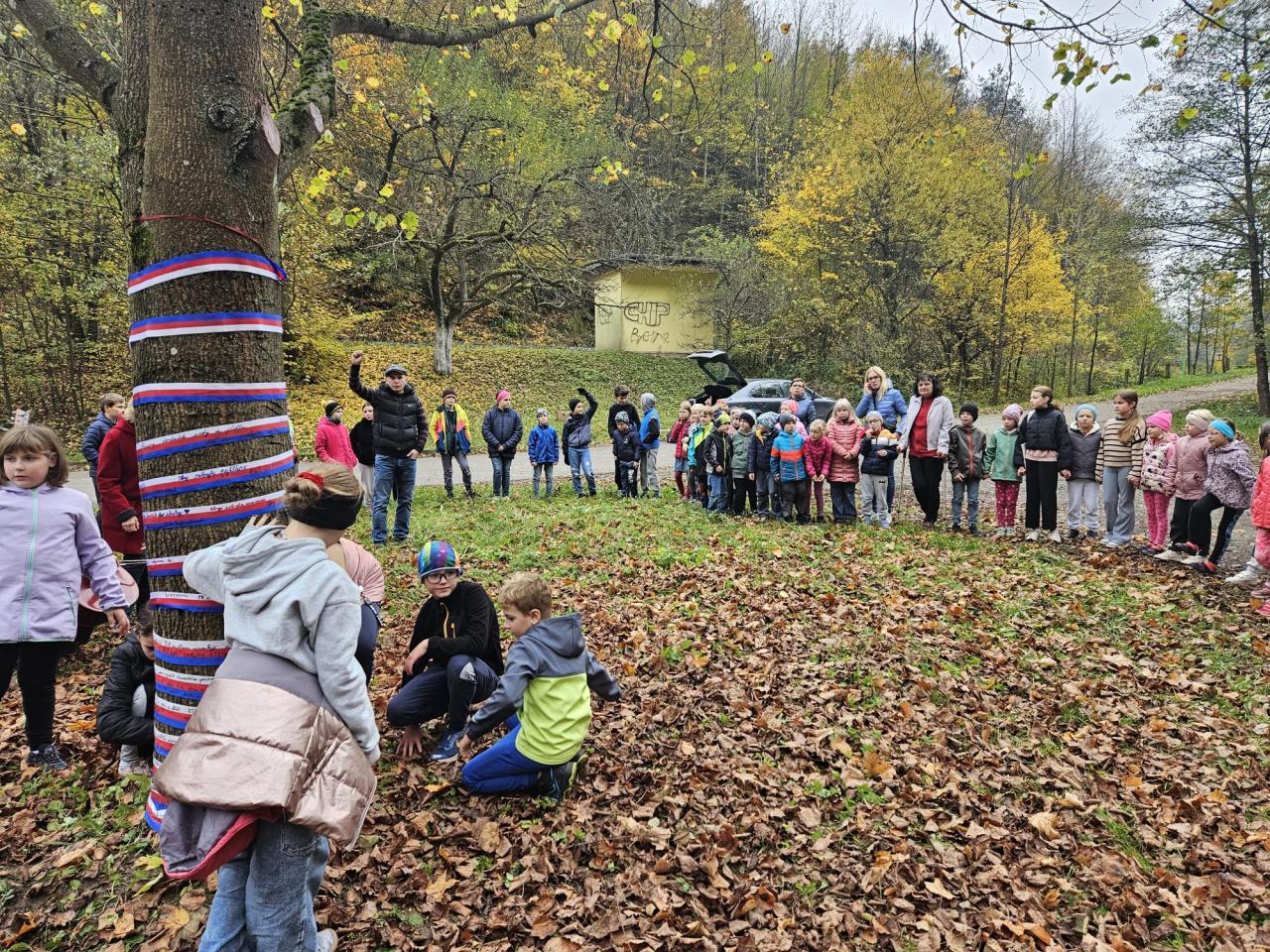 V pátek před 28. říjnem proběhla vycházka ke školní lípě, která byla součástí oslav státního svátku. Účastníci vyjádřili svá přání republice a společně zazpívali státní hymnu a tradiční píseň 'Ach synku, synku', čímž uctili význam tohoto dne.