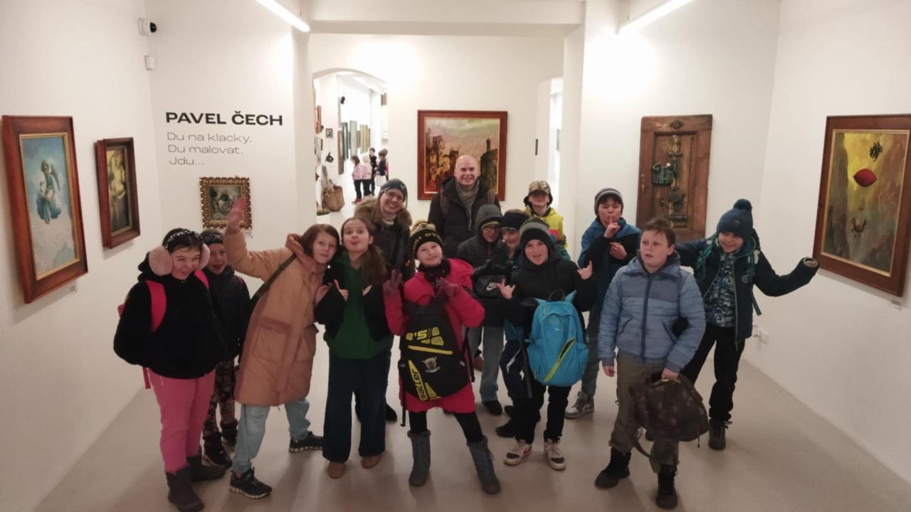 Se třídou jsme se v pátek vydali na výstavu Pavla Čecha do Brna do Kalina Gallery. Nejdříve jsme jeli vlakem do Tišnova a pak do Brna. Když jsme vystoupili dostali jsme mapu a podle ní se dostali na Zelný trh a na Dominikánské náměstí. Po cestě jsme se totiž byli podívat na kašnu Parnas a na kostel sv. Michaela archanděla. A u toho jsme vyplňovali pracovní list z vlastivědy. Potom jsme si udělali pauzu na svačinu a vyrazili na výstavu Pavla Čecha. Na výstavě jsme chvíli dělali pracovní list a prohlíželi si jeho obrazy a díla. Na výstavě se mi hrozně moc líbilo a moc jsme si to užili.