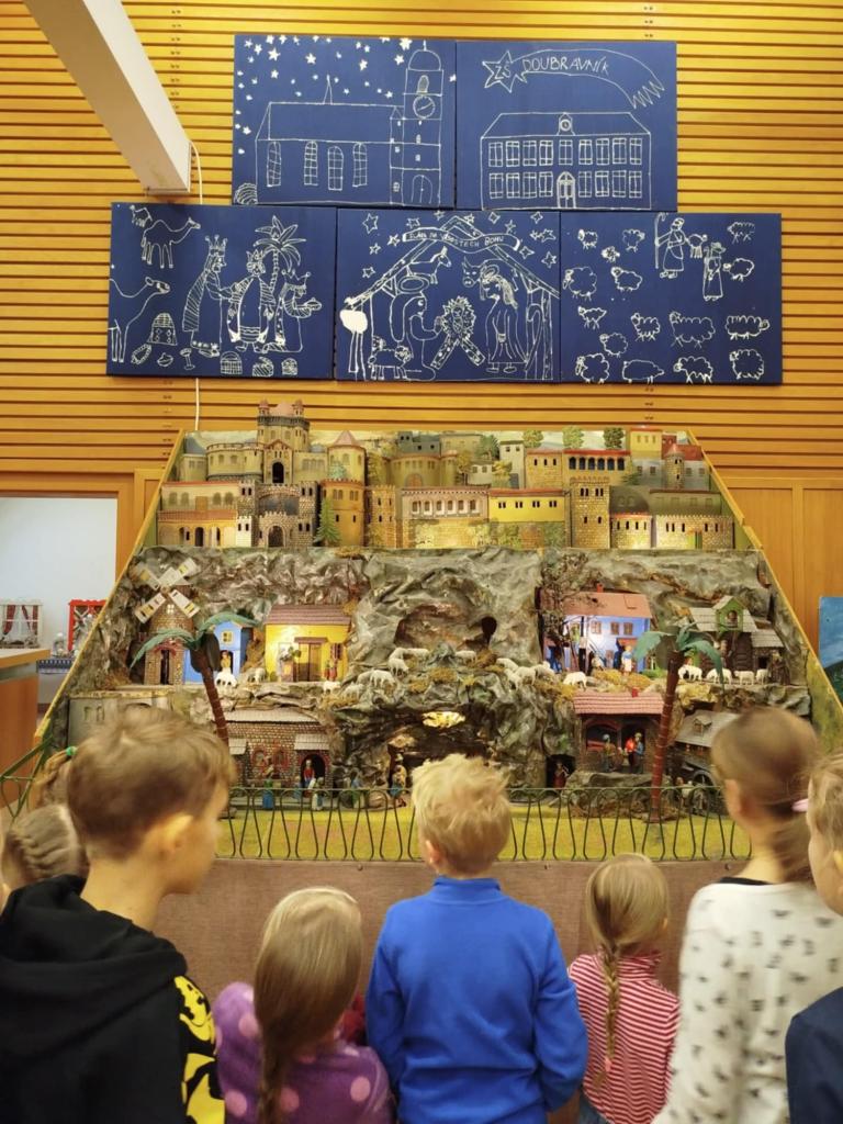 V loňském roce děti vytvořily modrotiskový betlém. Letos jsme malovali přírodními jíly a dotvářeli přírodninami. Vznikla tak obrazová pentalogie s názvem "Advent a Vánoce". Měli jsme tu čest, že součástí nádherné výstavy v Předklášteří byla dokonce dvě naše společná díla.
